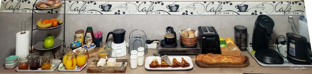 À votre disposition : Pour votre confort, la salle est équipée d’un réfrigérateur, d’un micro-ondes et de vaisselle. Un point chaud reste accessible gratuitement en dehors du petit-déjeuner pour vos pauses thé ou café.